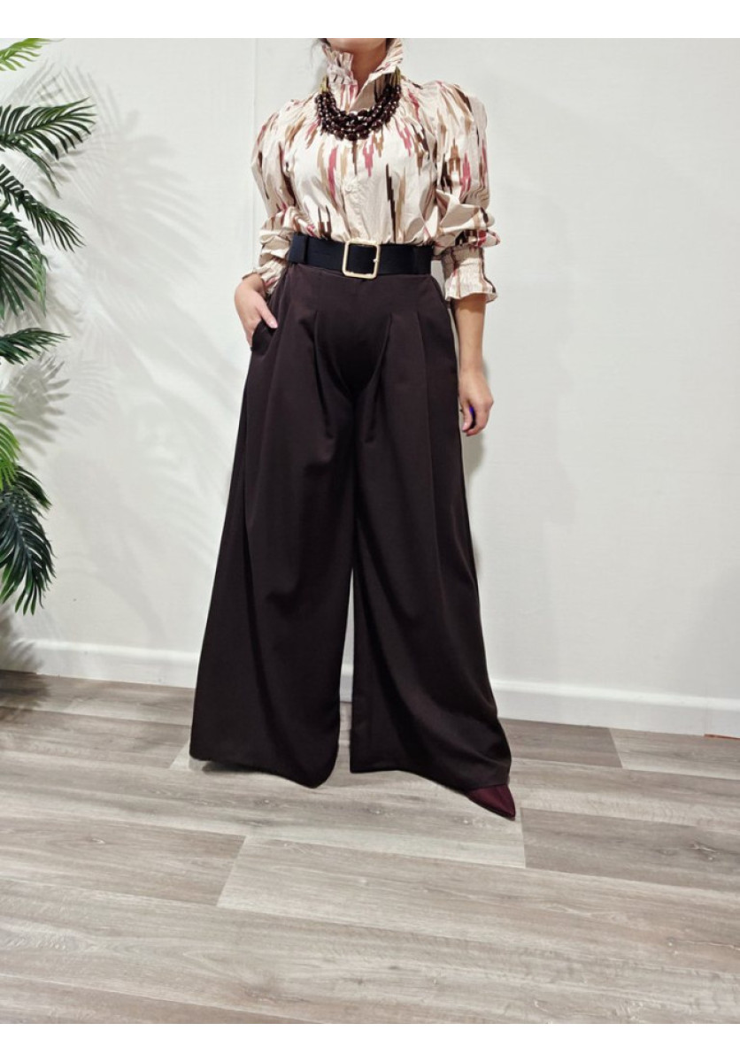 Blusa con cuello cisne con nido de abeja con estampado. Manga larga.