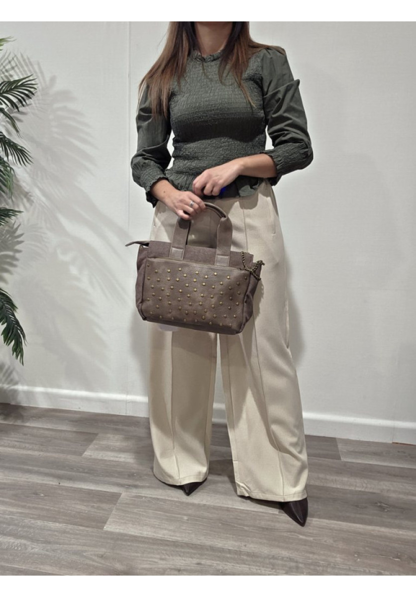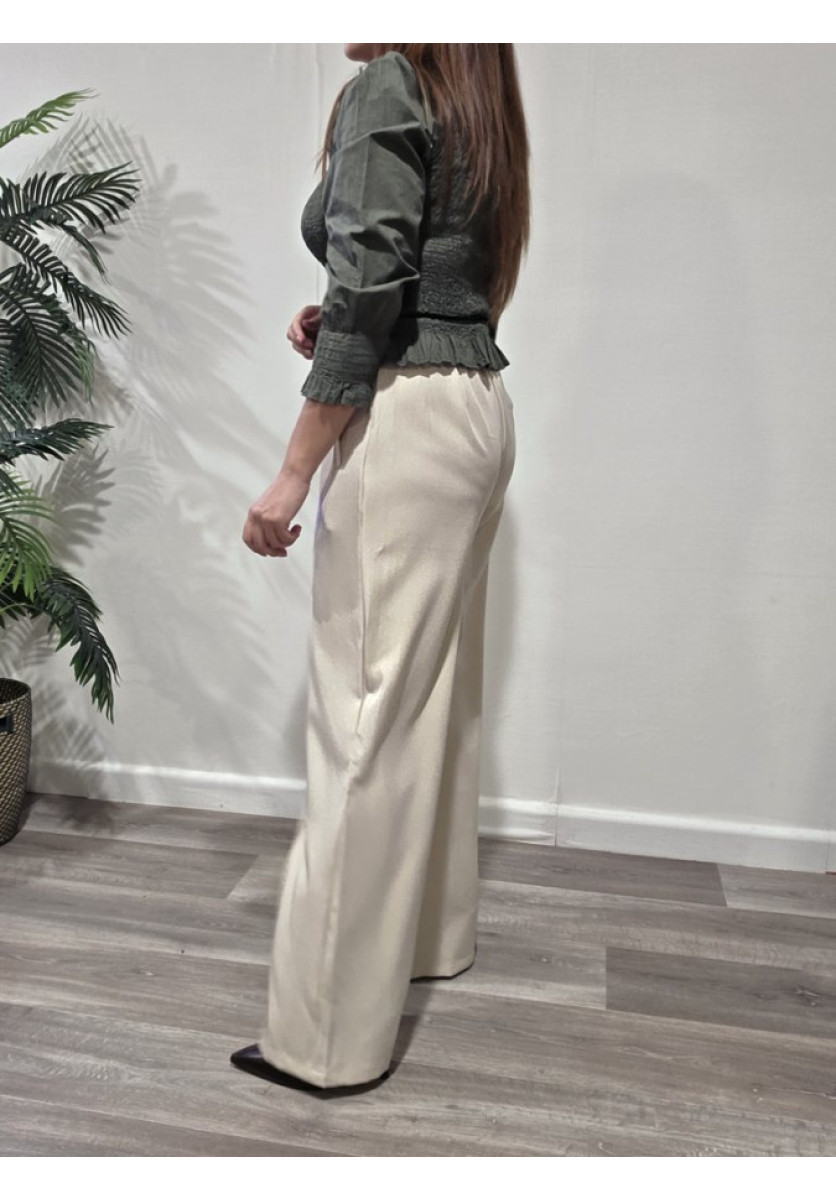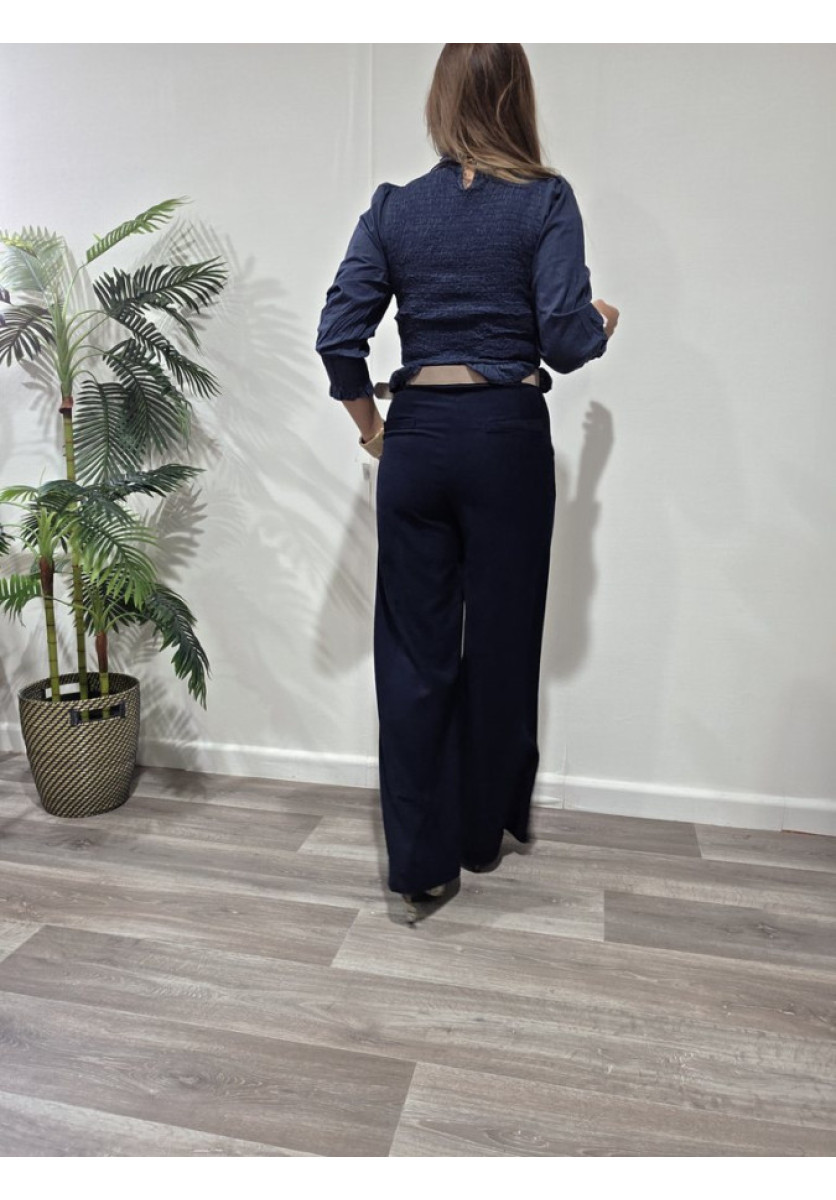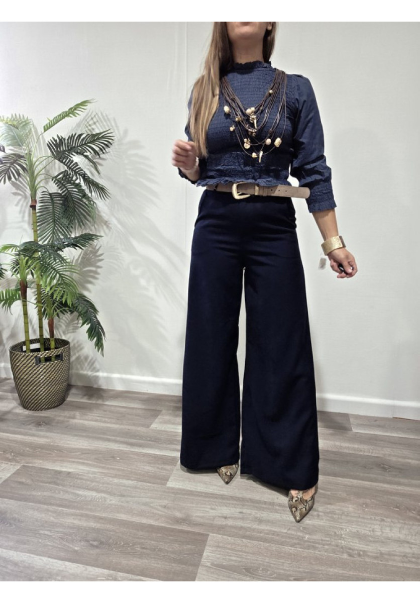 Blusa con cuerpo nido de abeja y vuelo en el bajo. Manga larga.