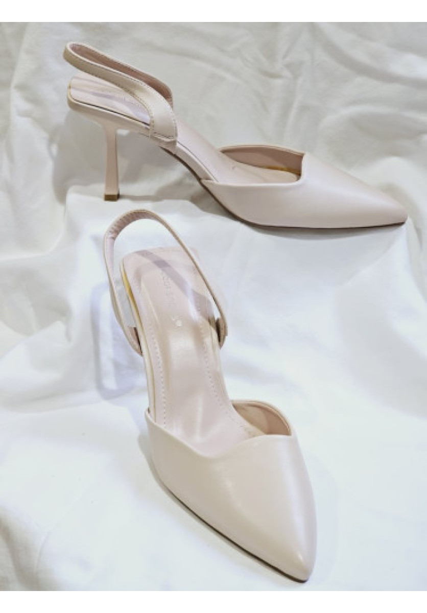 Zapato De Salón destalonado en beige. Altura de tacón de 9cm.