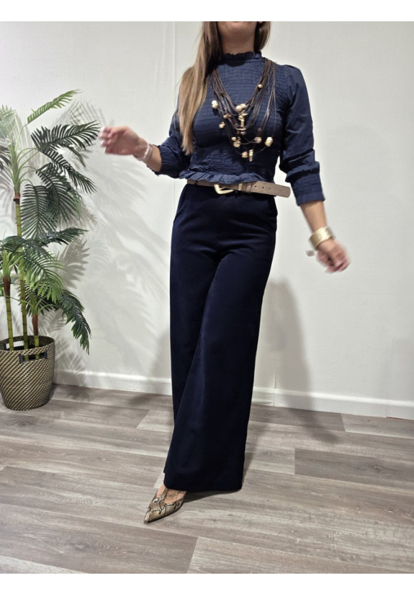 Pantalón ancho de micropana en azul marino. Corte tipo chino.