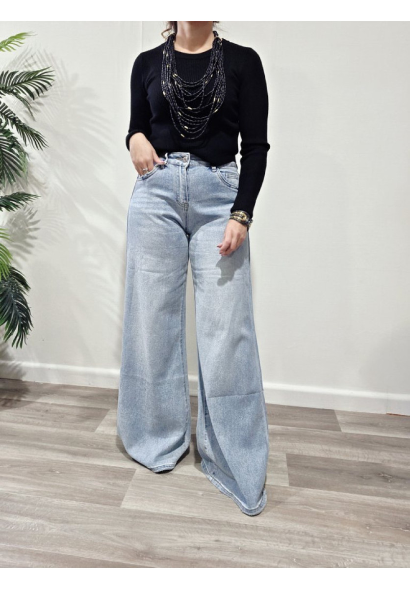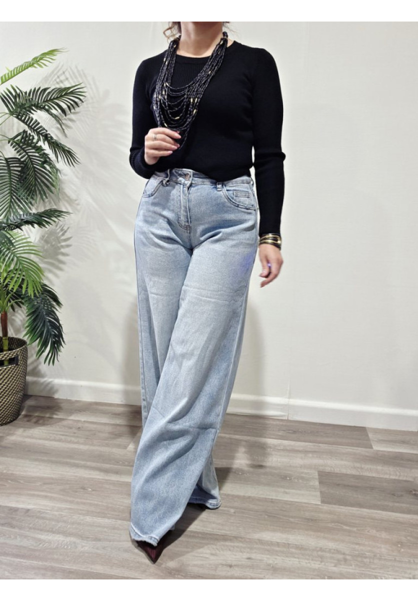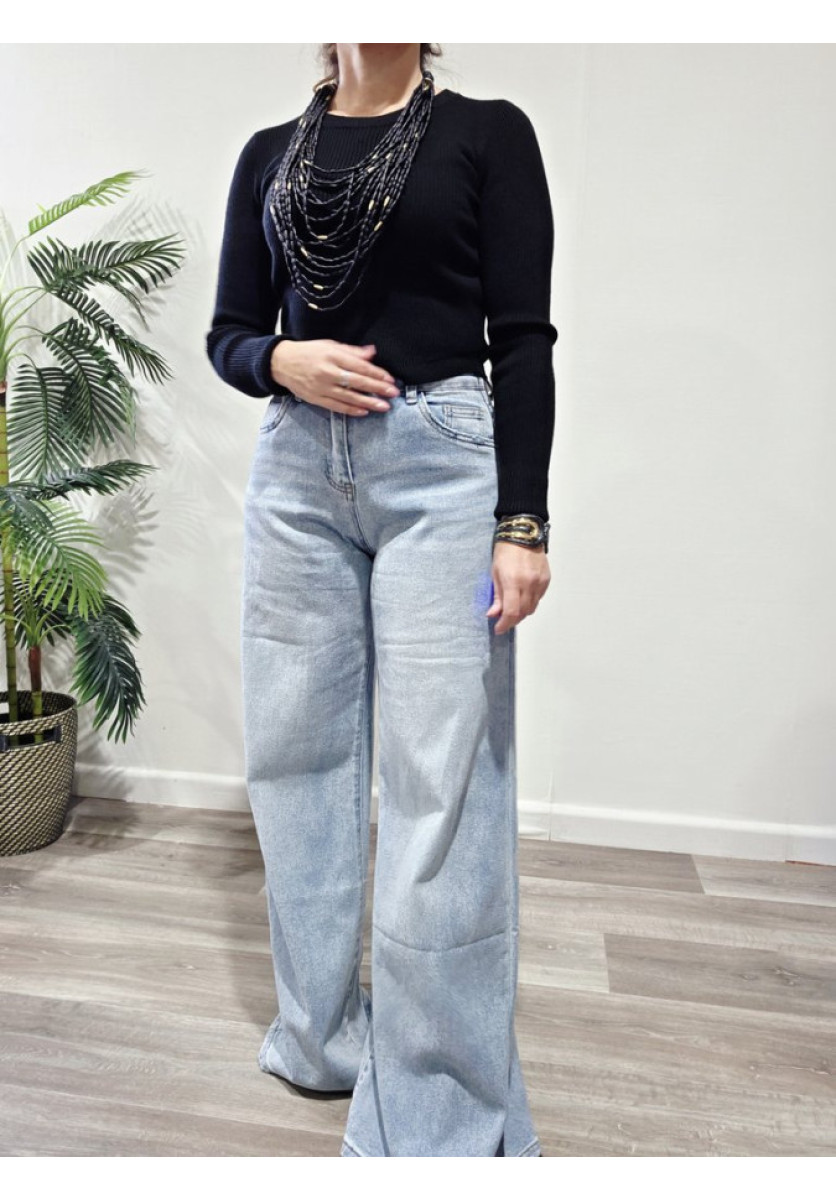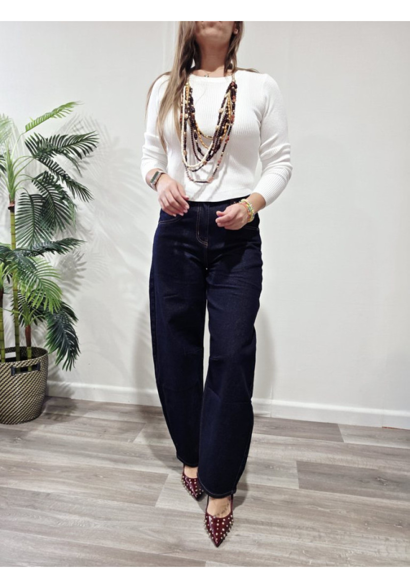 Jersey de canalé con cuello a la caja y manga larga.