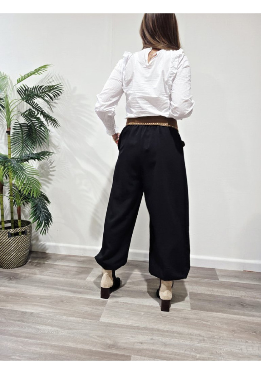 Blusa con cuerpo nido de abeja y laterales liso con vuelo en la manga.