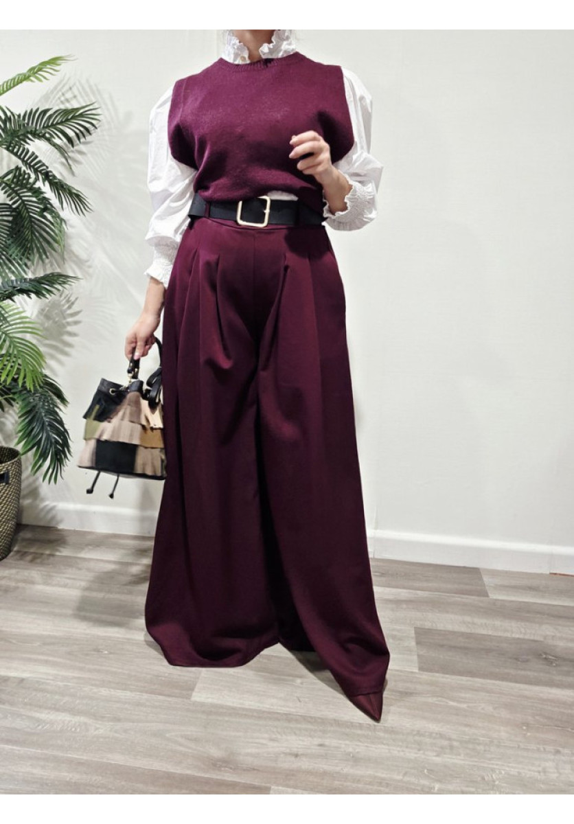 Chaleco de punto con cuello a la caja y bajo ajustado.