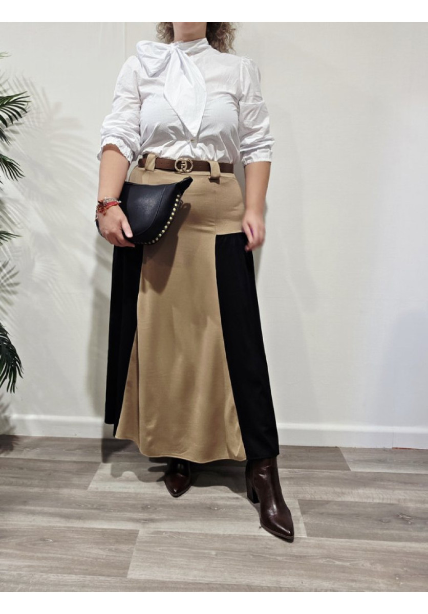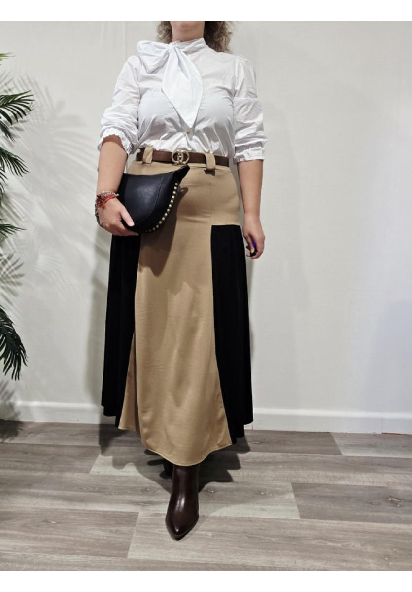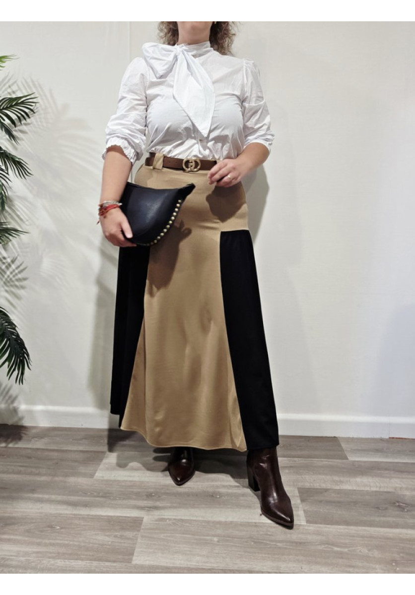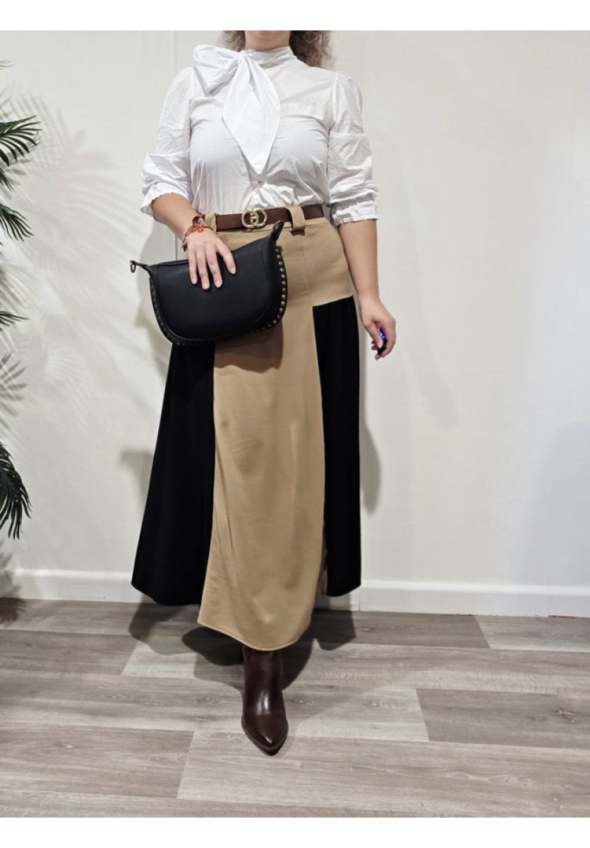 Blusa con medio lazo lateral en el escote. Puño de vuelo con rizo.