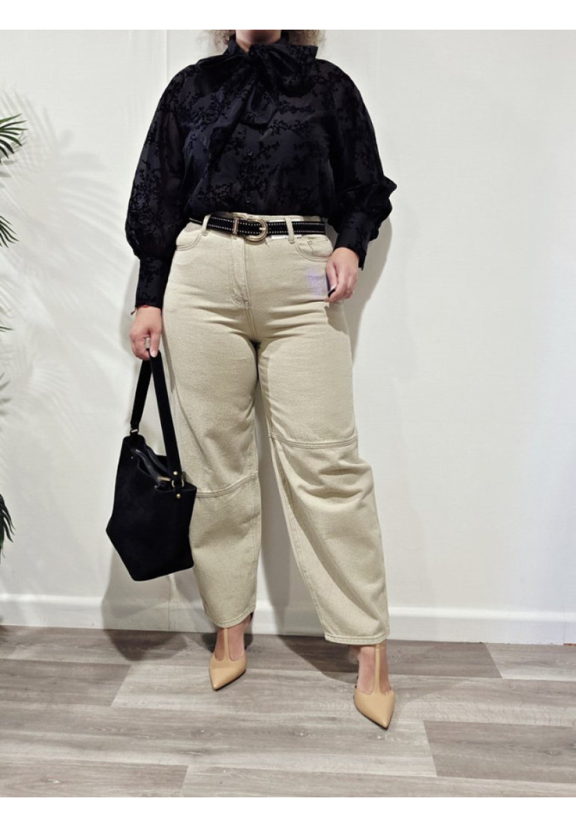 Blusa con relieve de terciopelo y lazada al cuello.