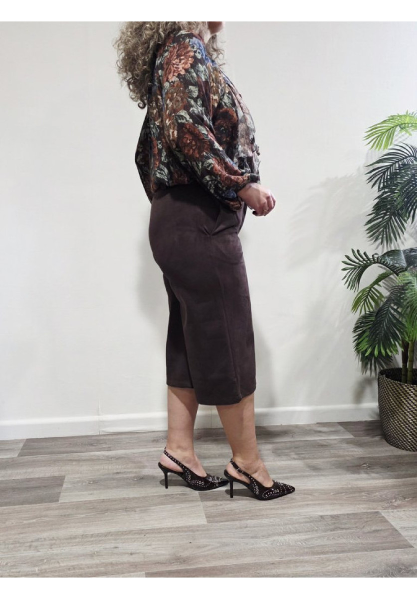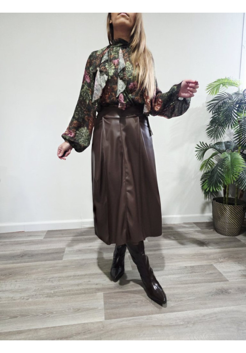 Blusa estampado floral en tonos naranja con vuelos delanteros. Lazada trasera.