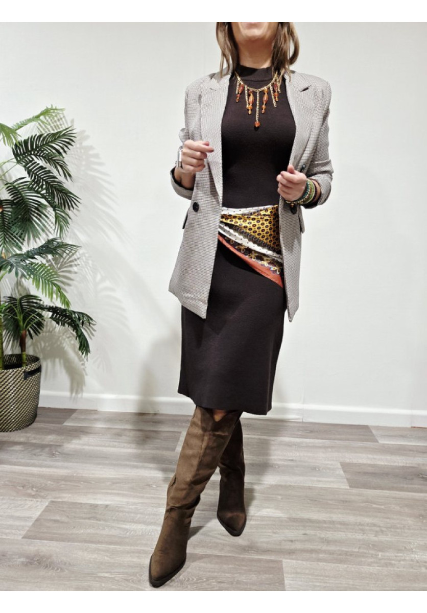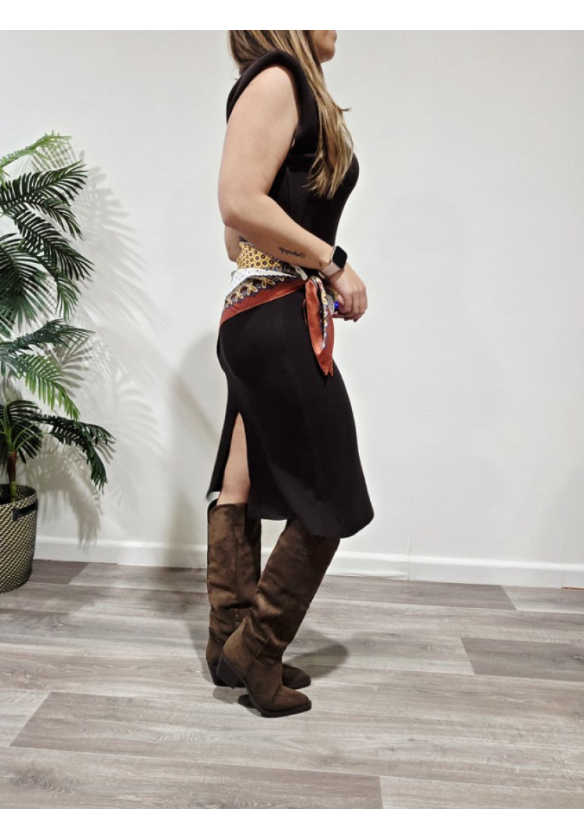 Jersey de punto con escote a la caja, con manga sisa y abertura trasera.