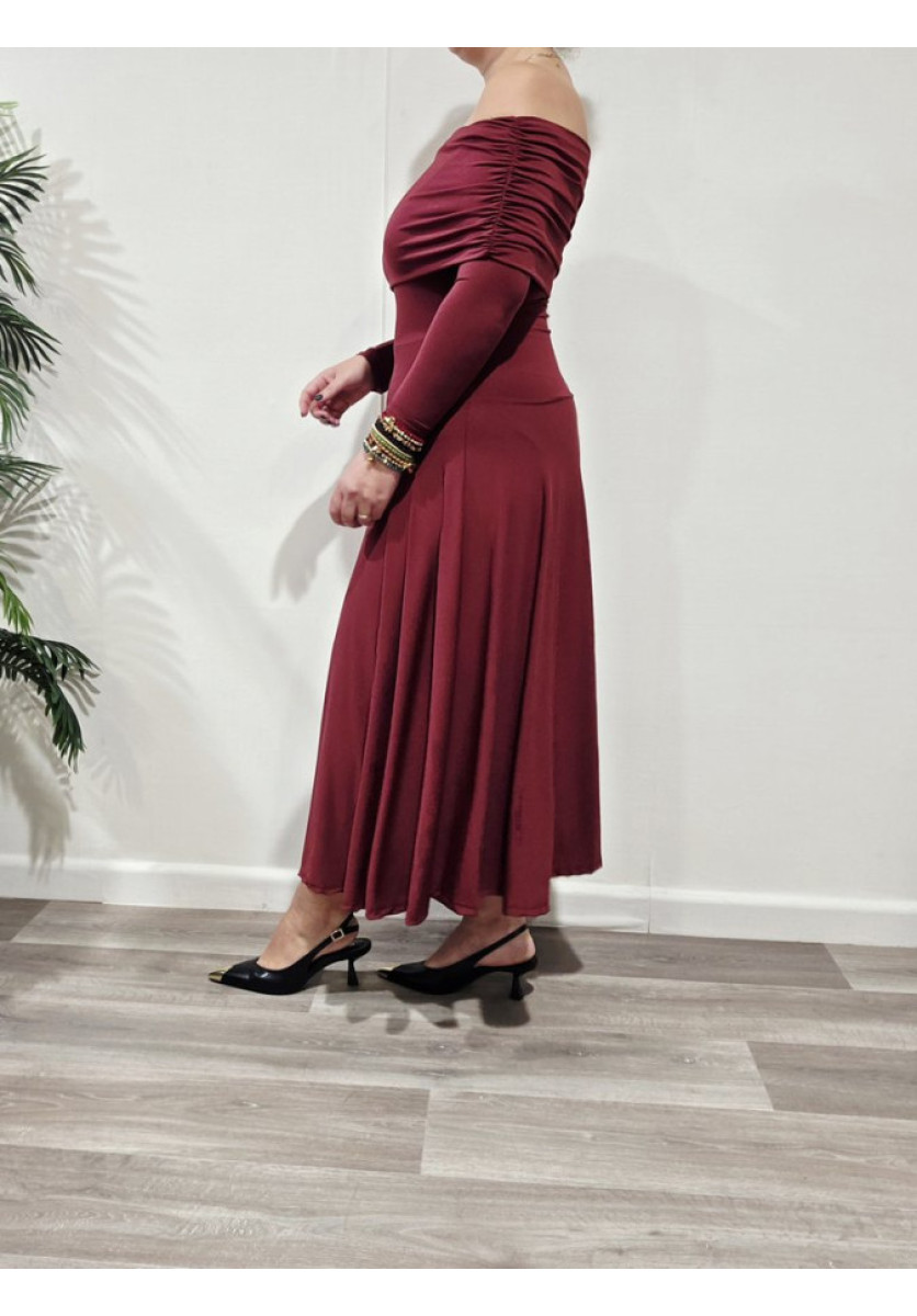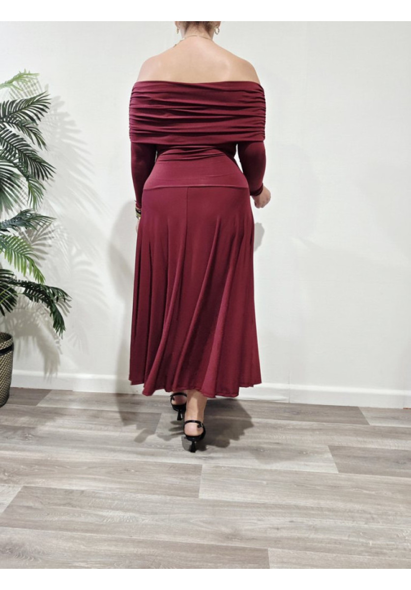 Vestido con escote envolvente de manga larga y bajo de vuelo.