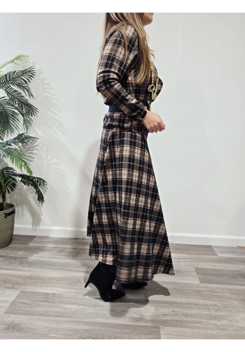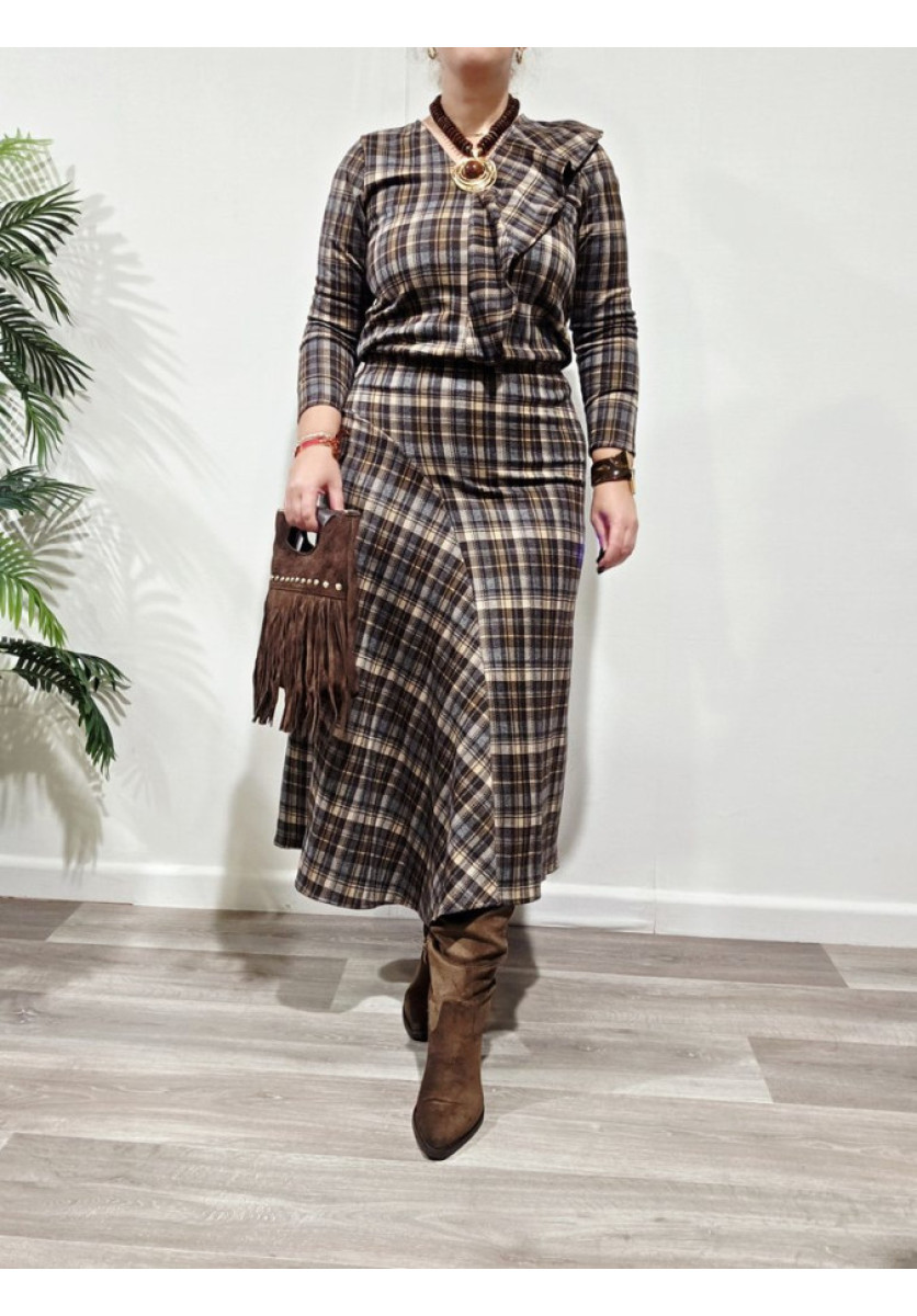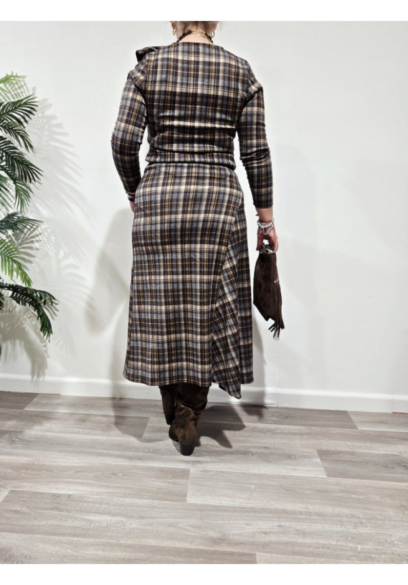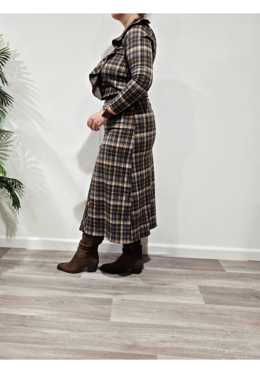 Conjunto de top de manga larga, vuelo en el frontal y escote en pico y falda desigual y cintura de rizo.