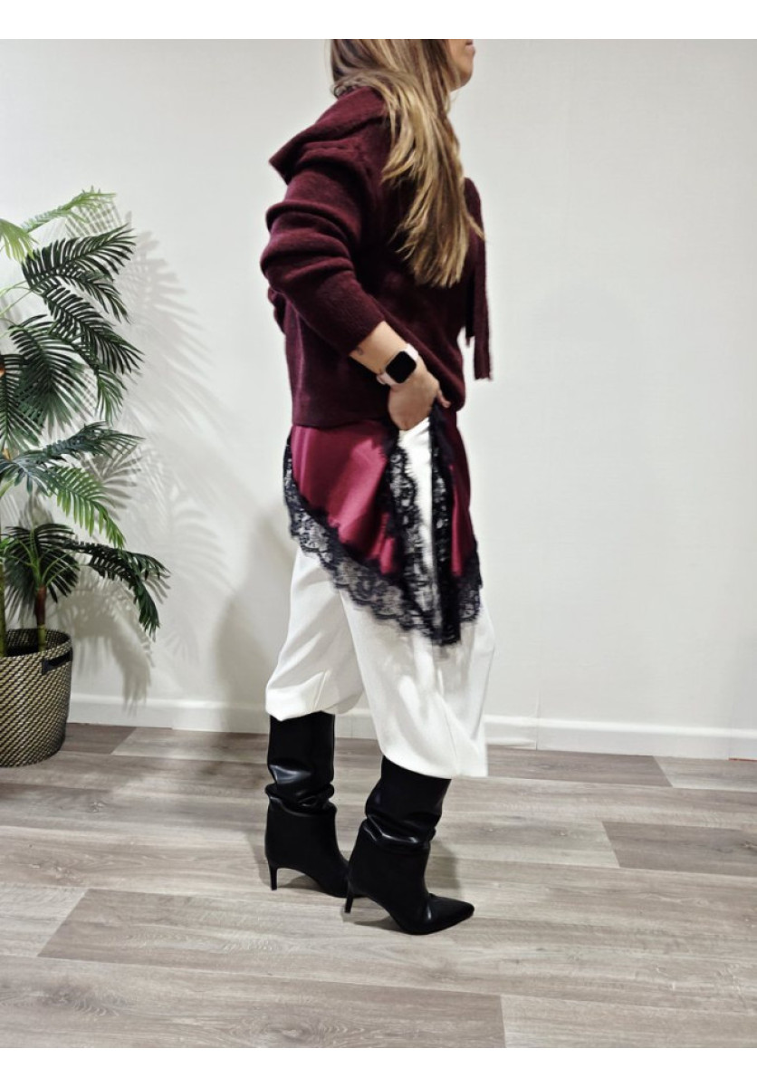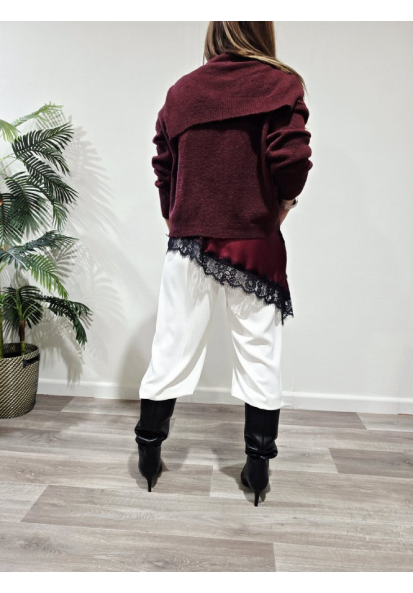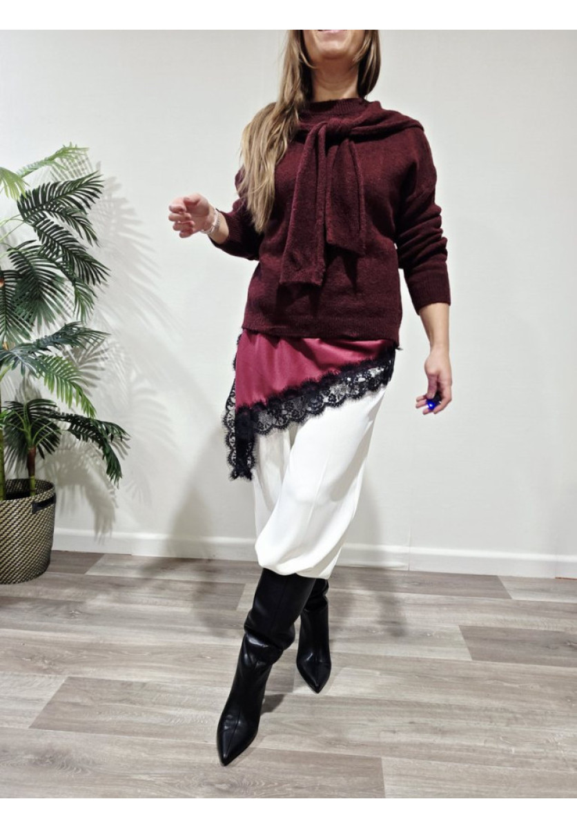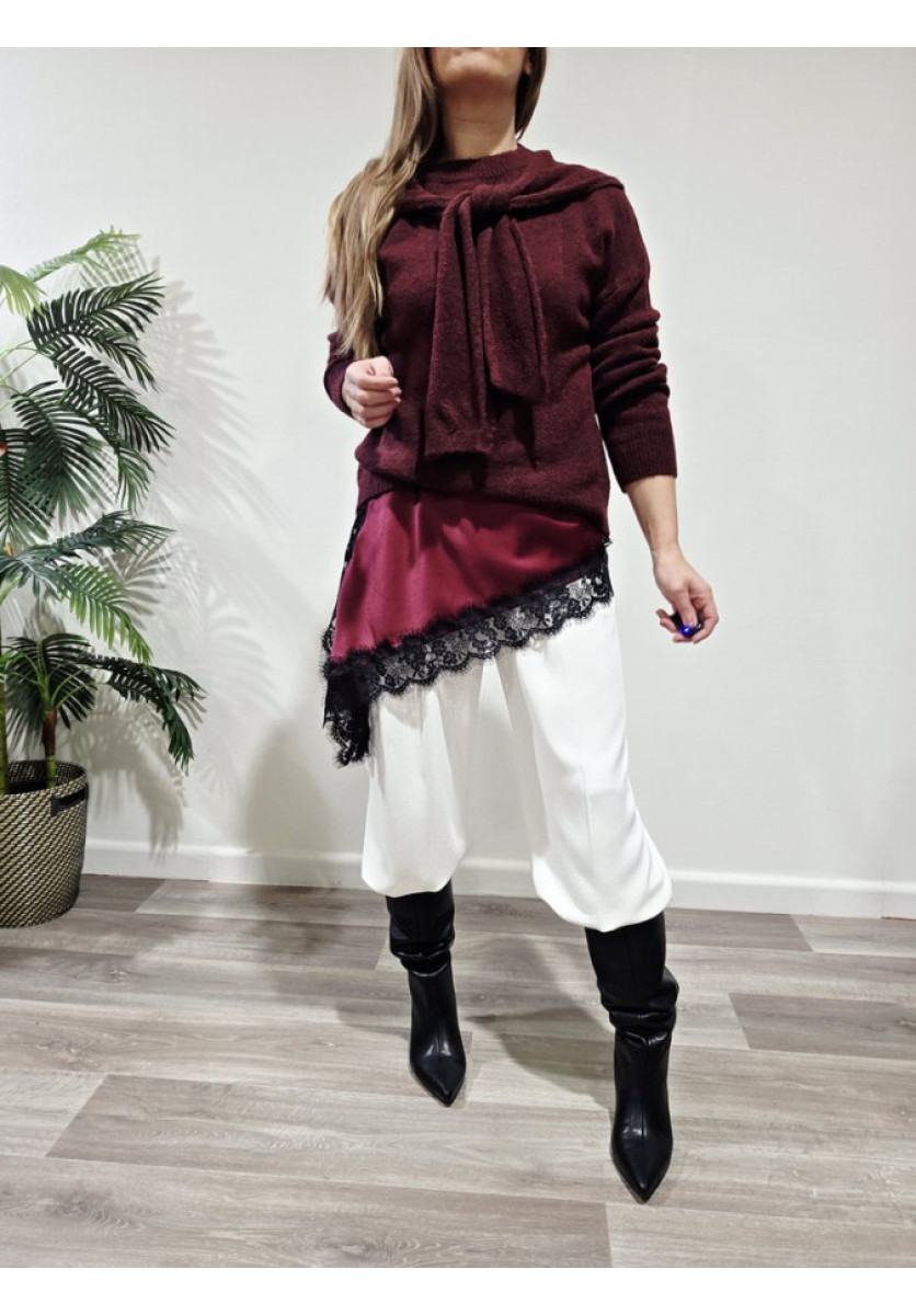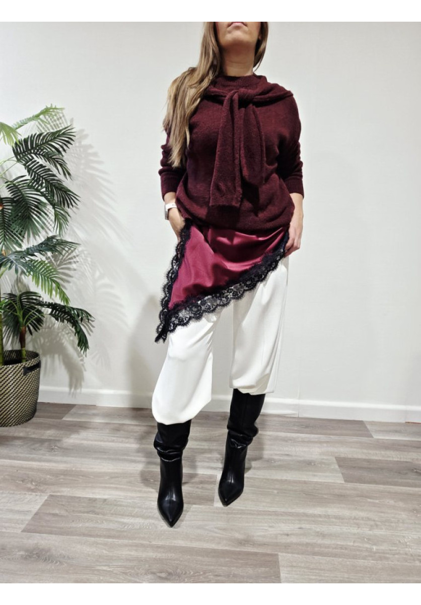 Jersey con bufanda del mismo tono. Escote a la caja de manga larga.