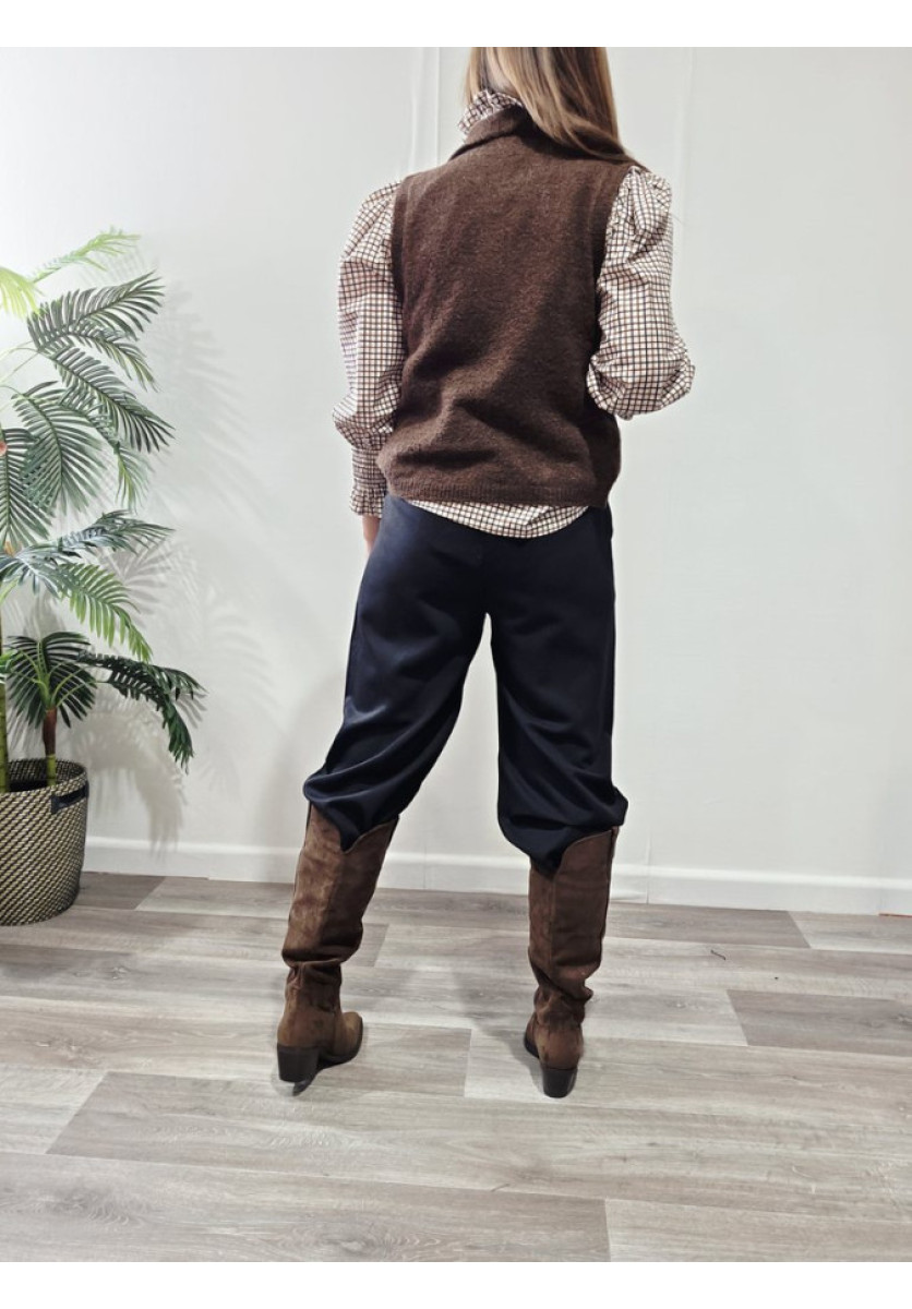 Chaleco de lana sin mangas y cuello de polo con botones.