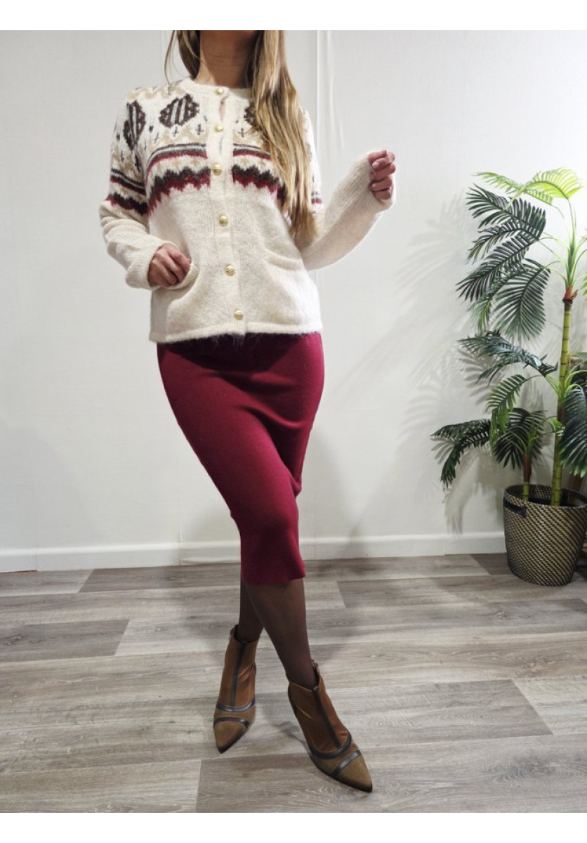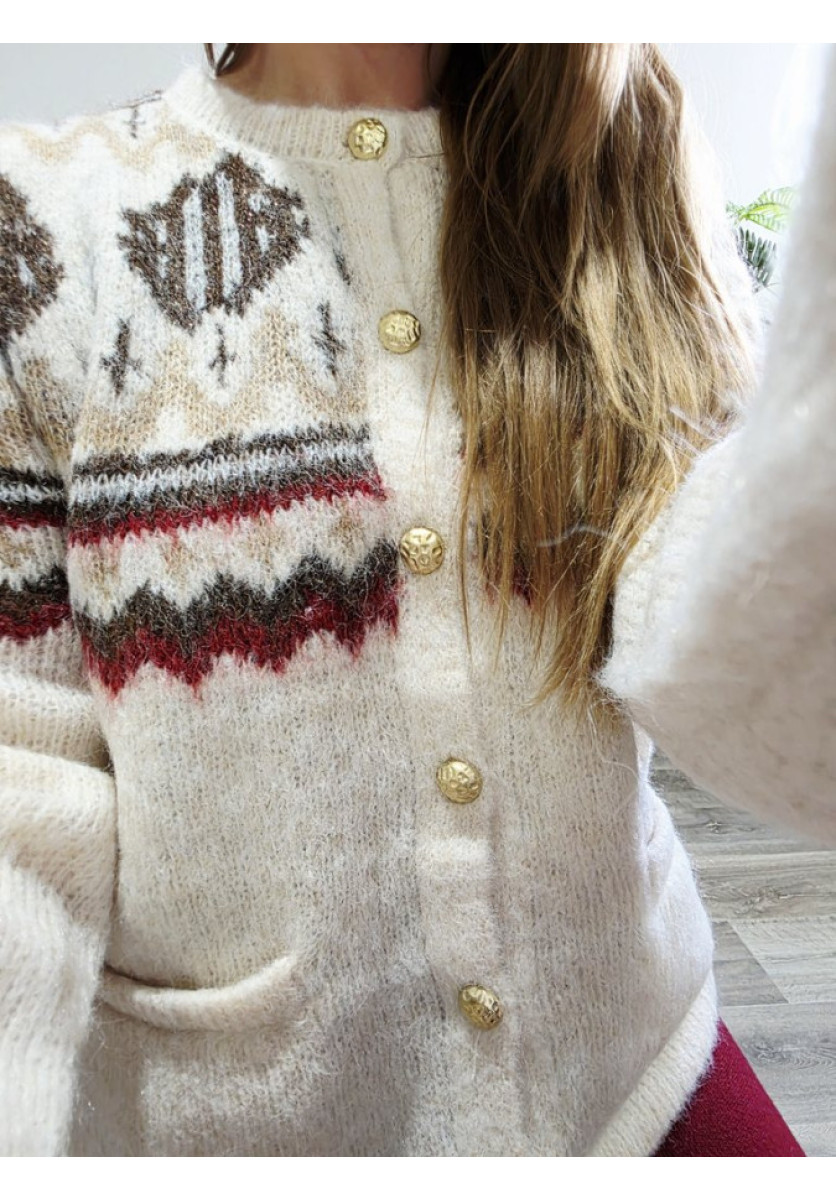 Rebeca con cenefa en la parte superior. Botones delanteros en dorado.
