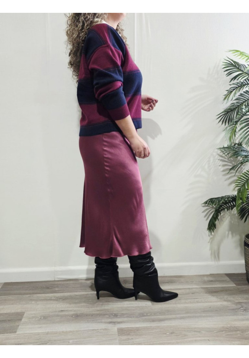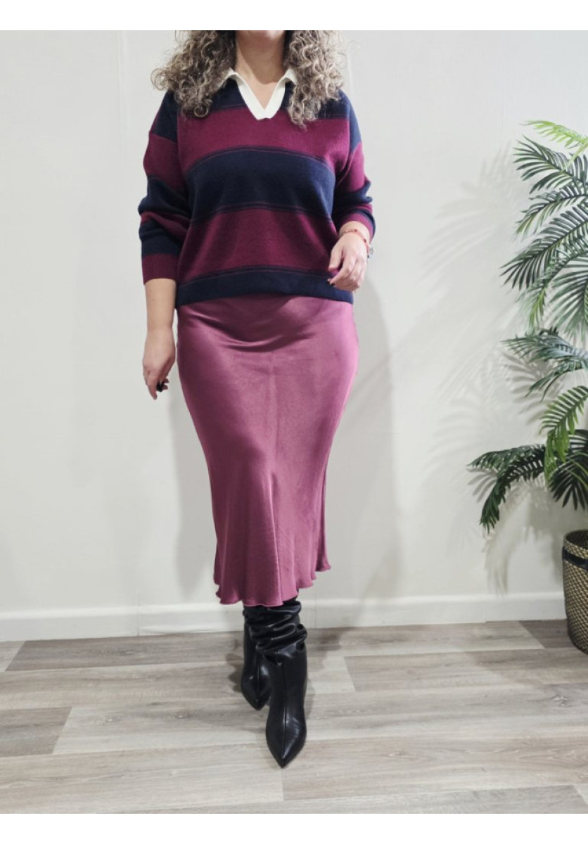 - Rayas anchas en tonos burdeos y marino, tendencia total