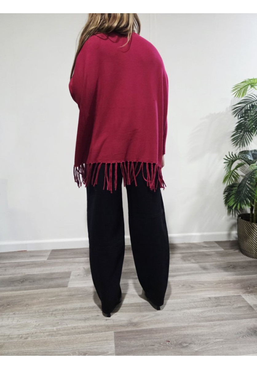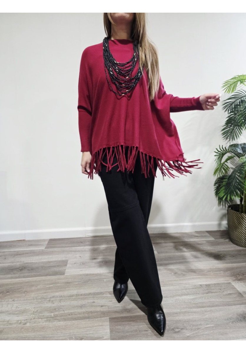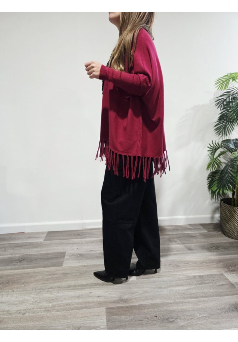 Un jersey cómodo, moderno y con mucho estilo. Su diseño oversize y el detalle de flecos en el bajo lo convierten en una prenda diferente y muy favorecedora, perfecta para looks casuales con un toque boho.