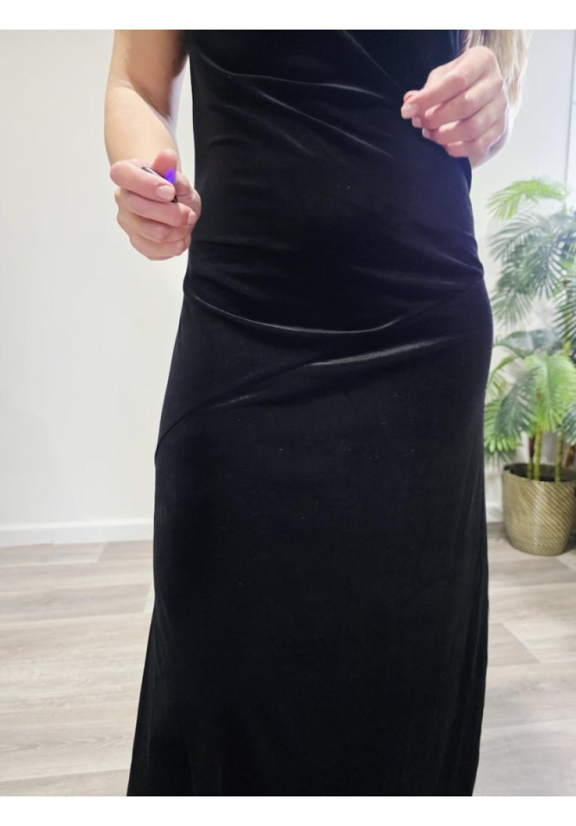 Su escote drapeado aporta un efecto fluido y favorecedor que realza la figura.