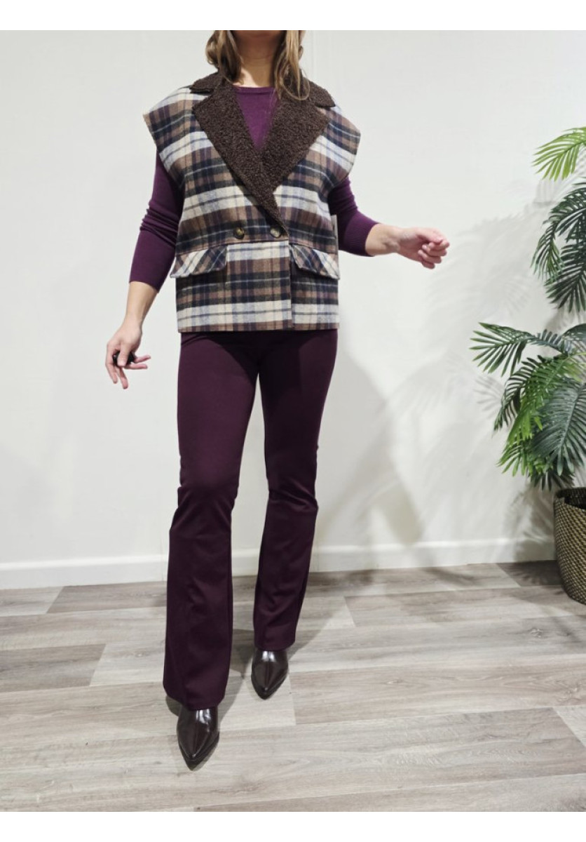 Pantalón de campana con tejido elástico y favorecedor, ideal para estilizar la figura y crear looks elegantes y cómodos.