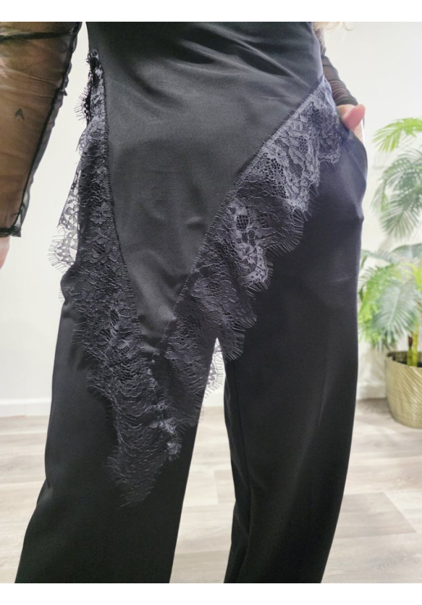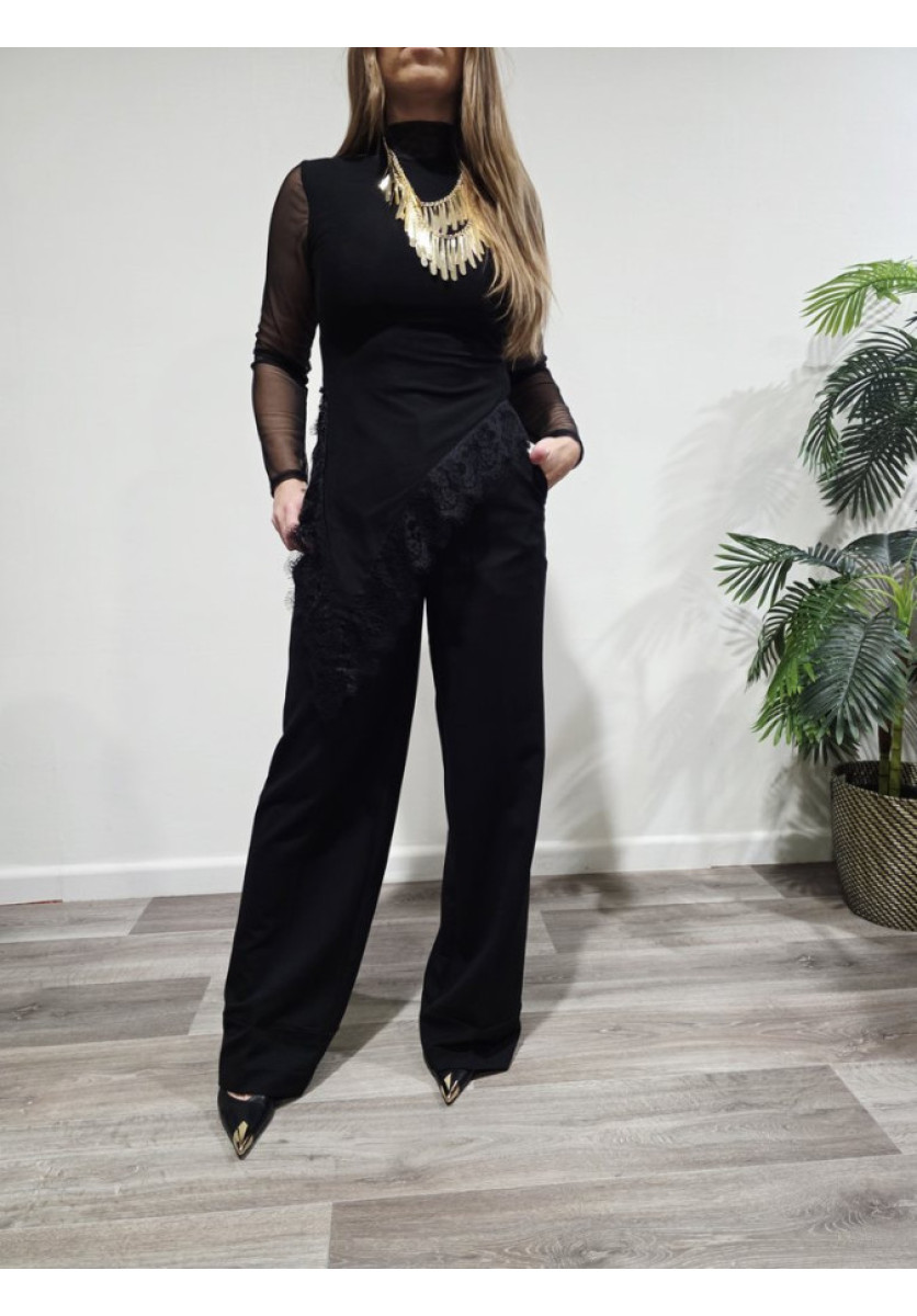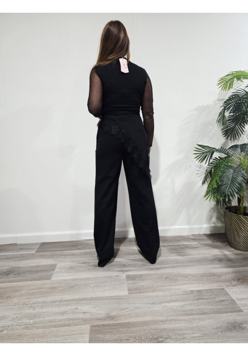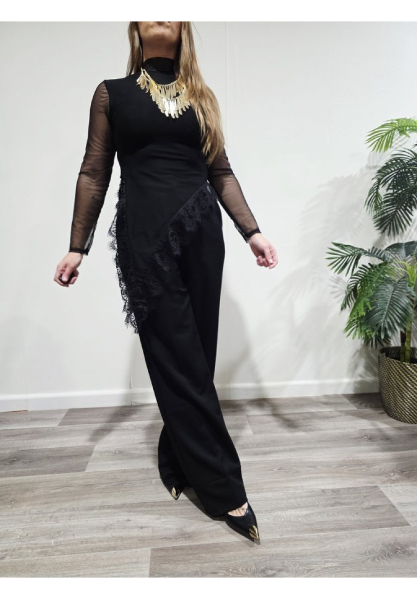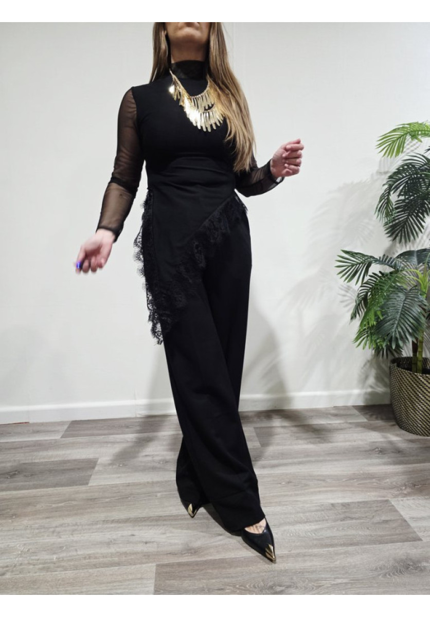 Top elegante y sofisticado con mezcla de transparencias y encaje, perfecto para looks de noche con un toque femenino y moderno.