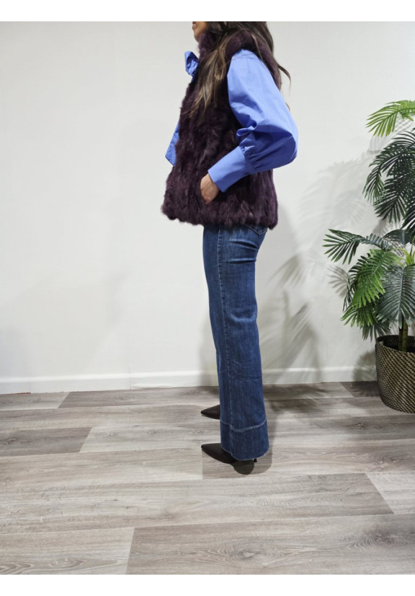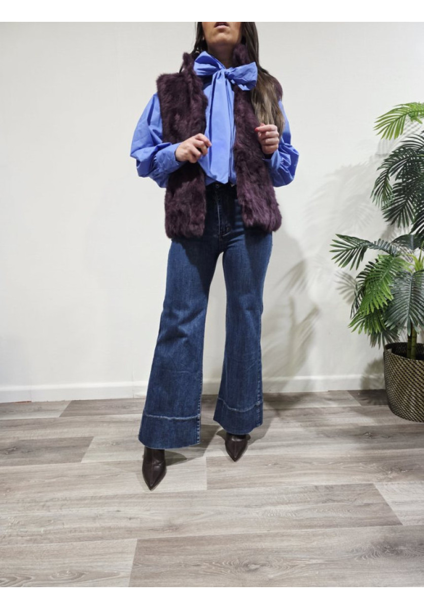 Chaleco de pelo sintético en tono morado. Tejido suave con volumen y textura mullida. Diseño recto sin mangas. Interior forrado para mayor confort. Cierre con clips. Talla única adaptable. Perfecto para combinar con camisas, jerséis o vestidos en looks de temporada.