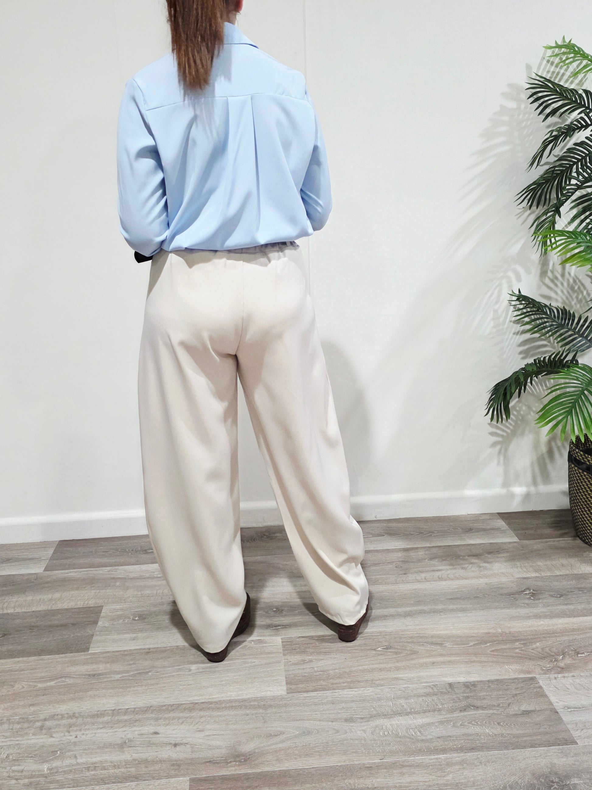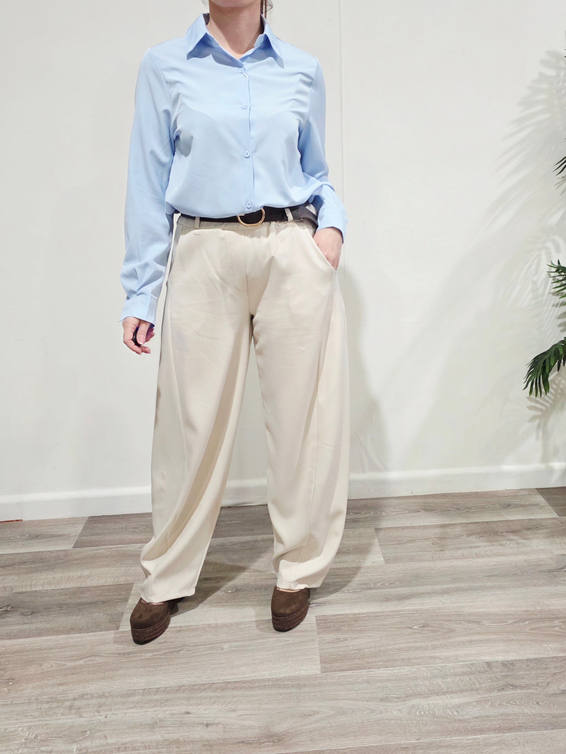 Camisa básica en tono azul cielo, una prenda imprescindible de armario por su elegancia y versatilidad.