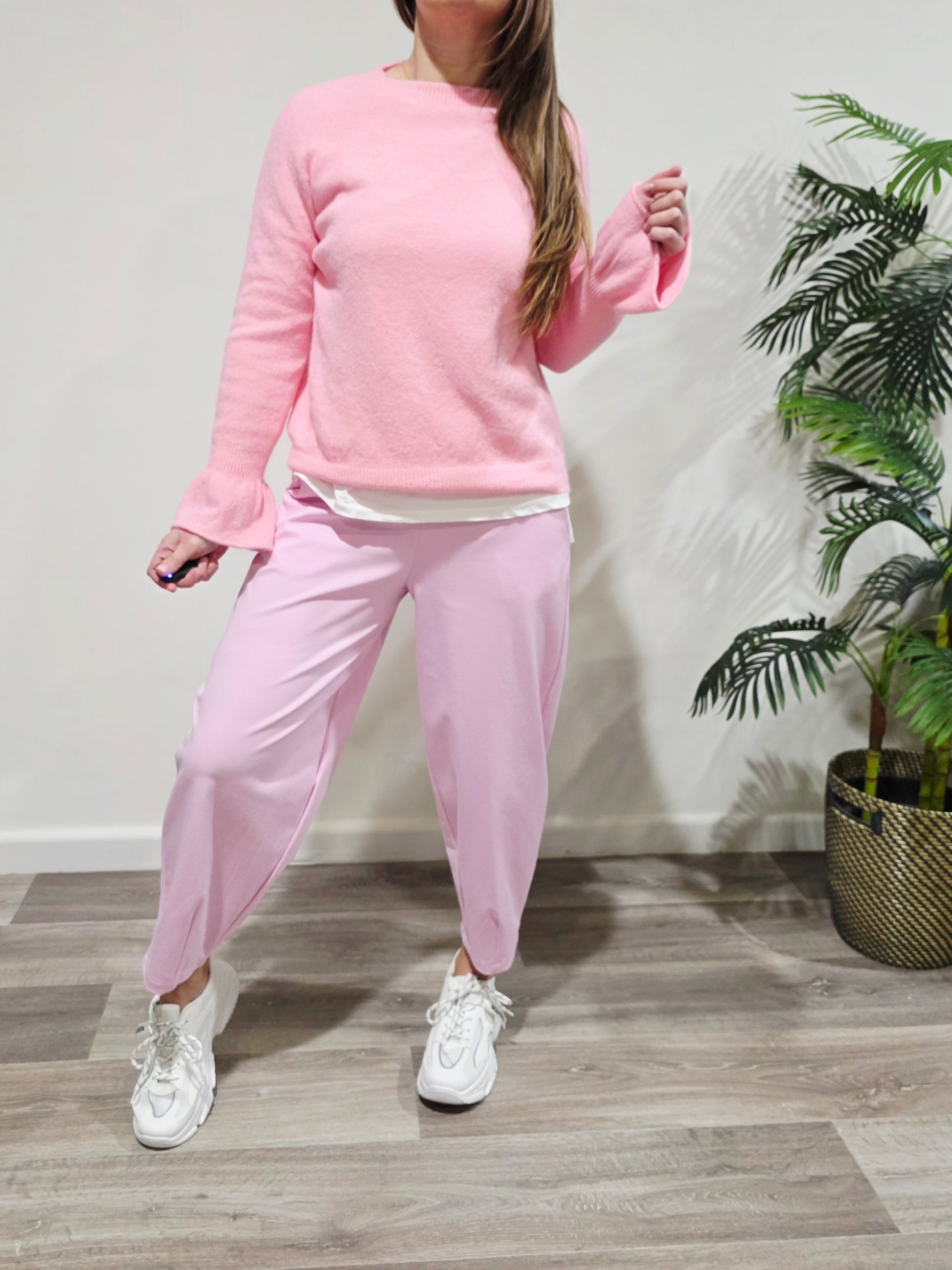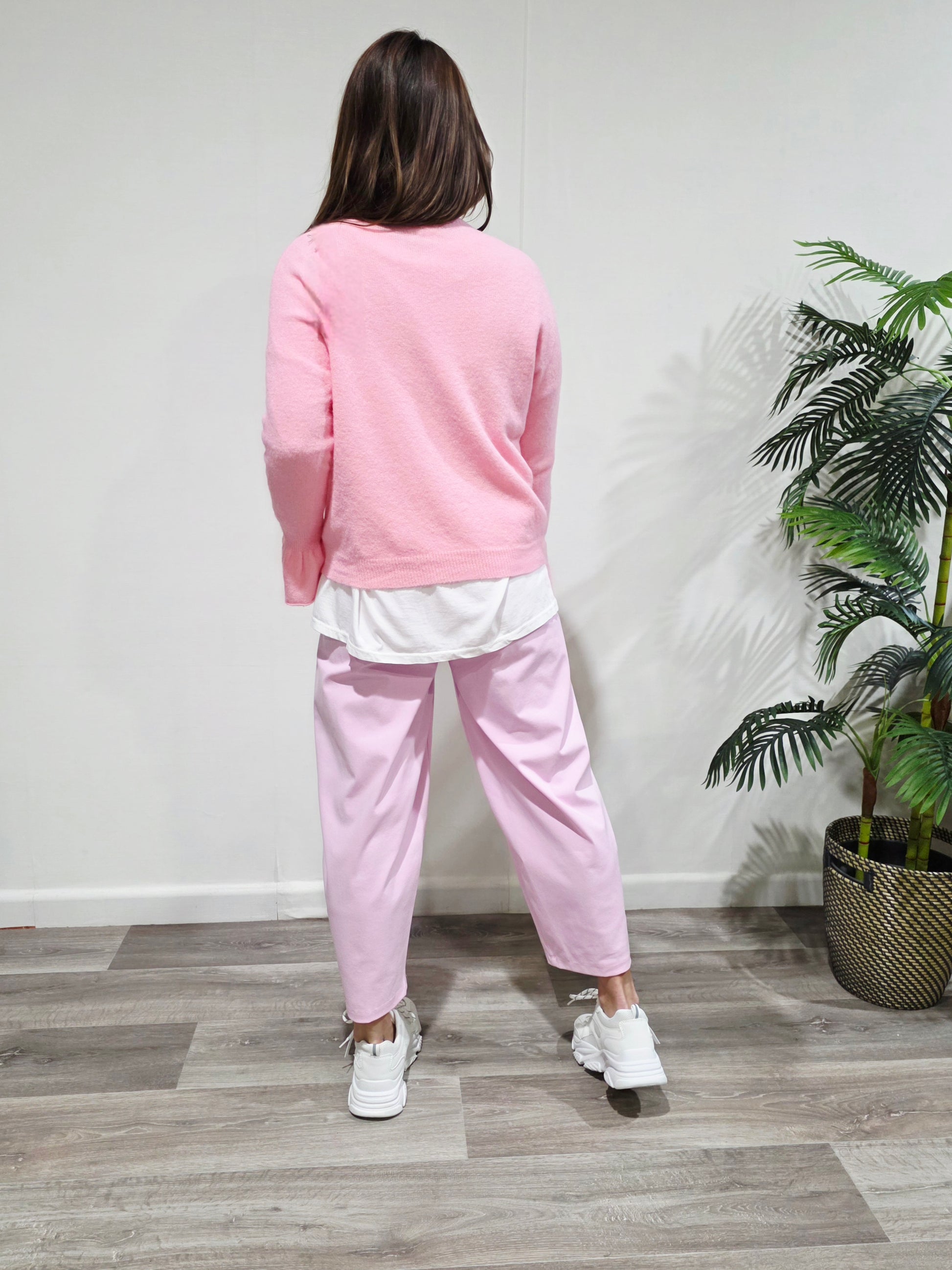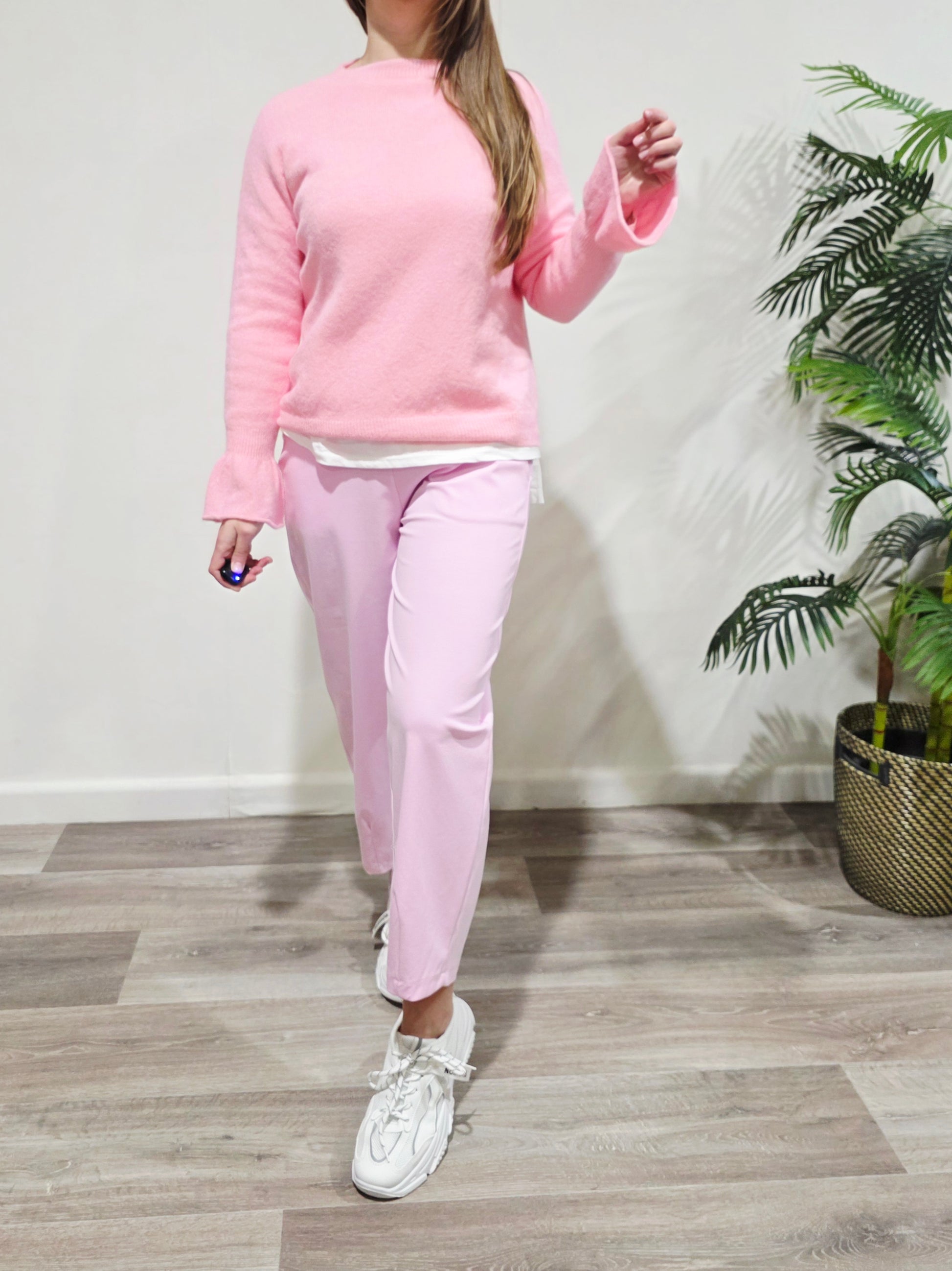 Jersey de punto suave y ligero, con caída fluida y tacto agradable. Disponible en rosa pastel y amarillo vainilla, perfecto para dar luz y dulzura a tus looks de entretiempo. Con Puño de vuelo.