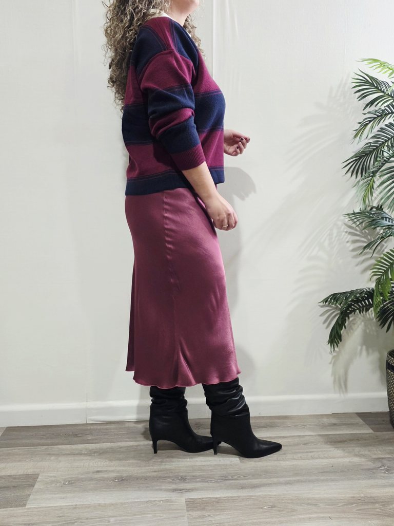 - Rayas anchas en tonos burdeos y marino, tendencia total