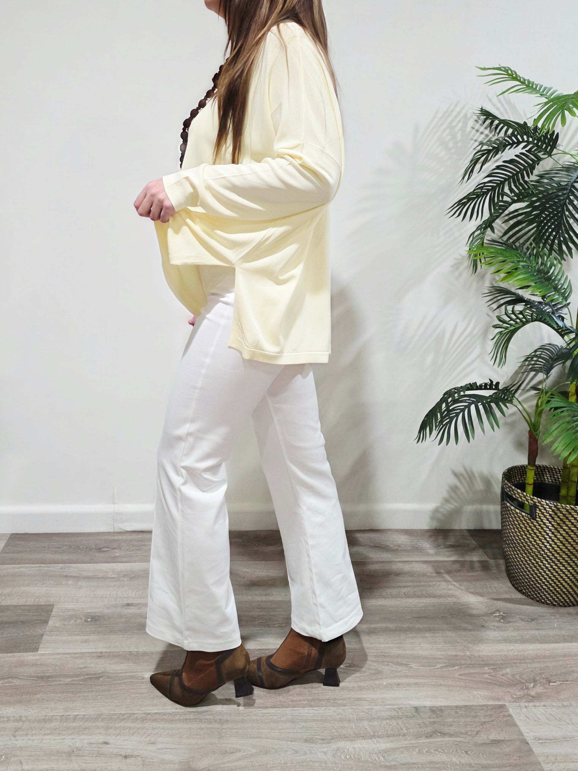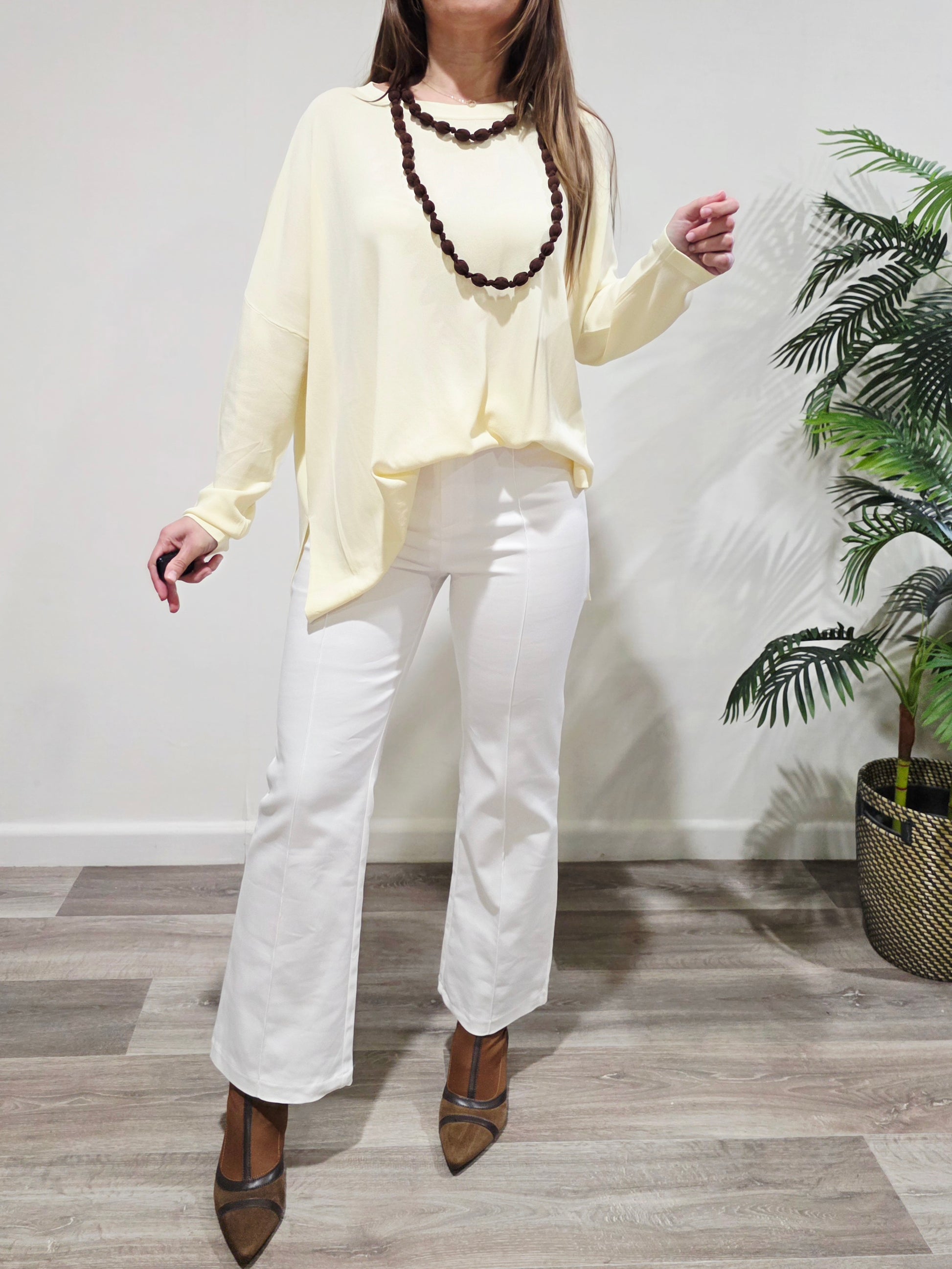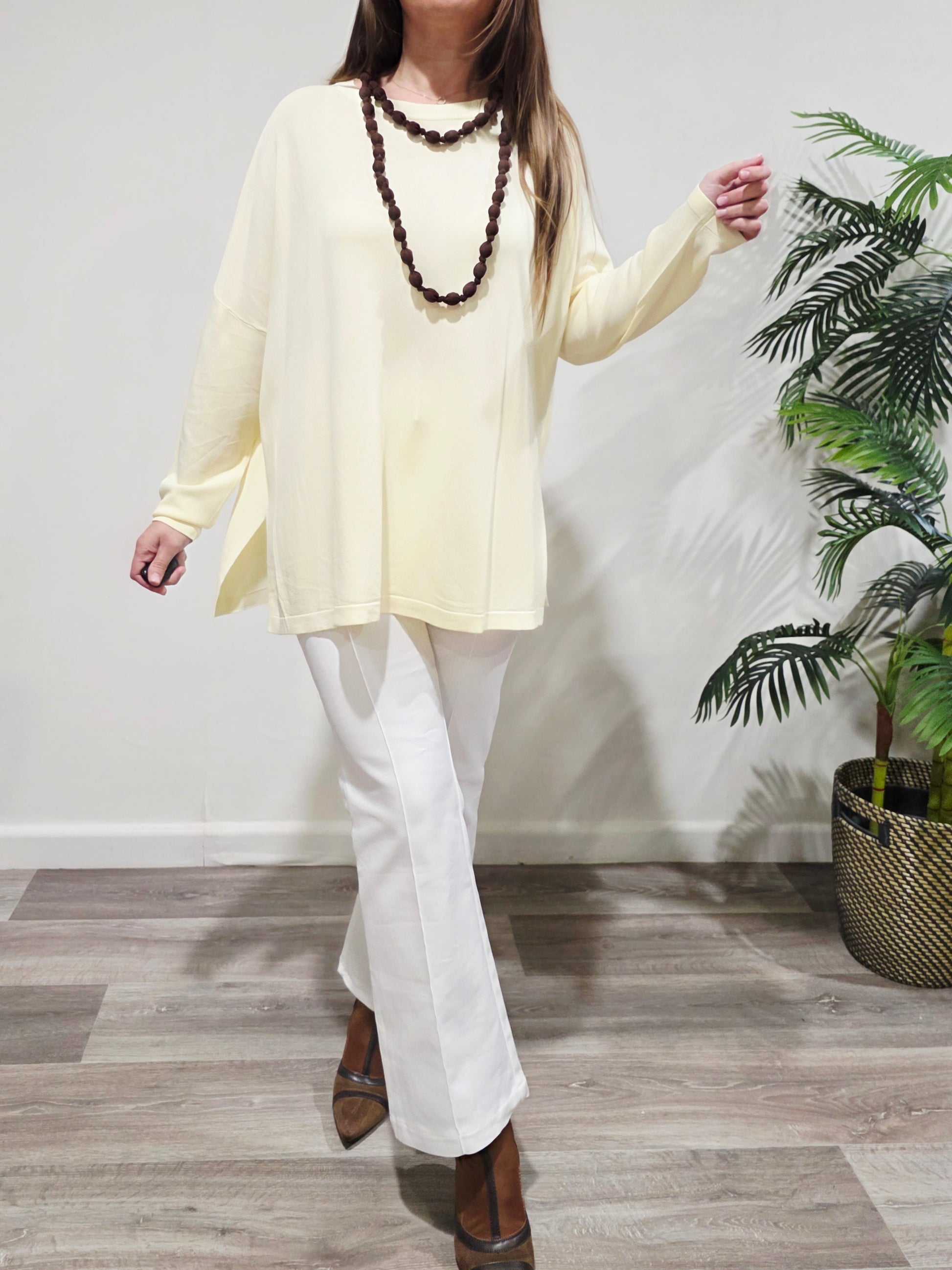 Jersey de punto fino y muy suave, con cuello redondo y corte recto que se adapta cómodamente a la silueta. Tejido ligero y fluido, ideal para entretiempo y perfecto para llevar solo o debajo de chaquetas y blazers.