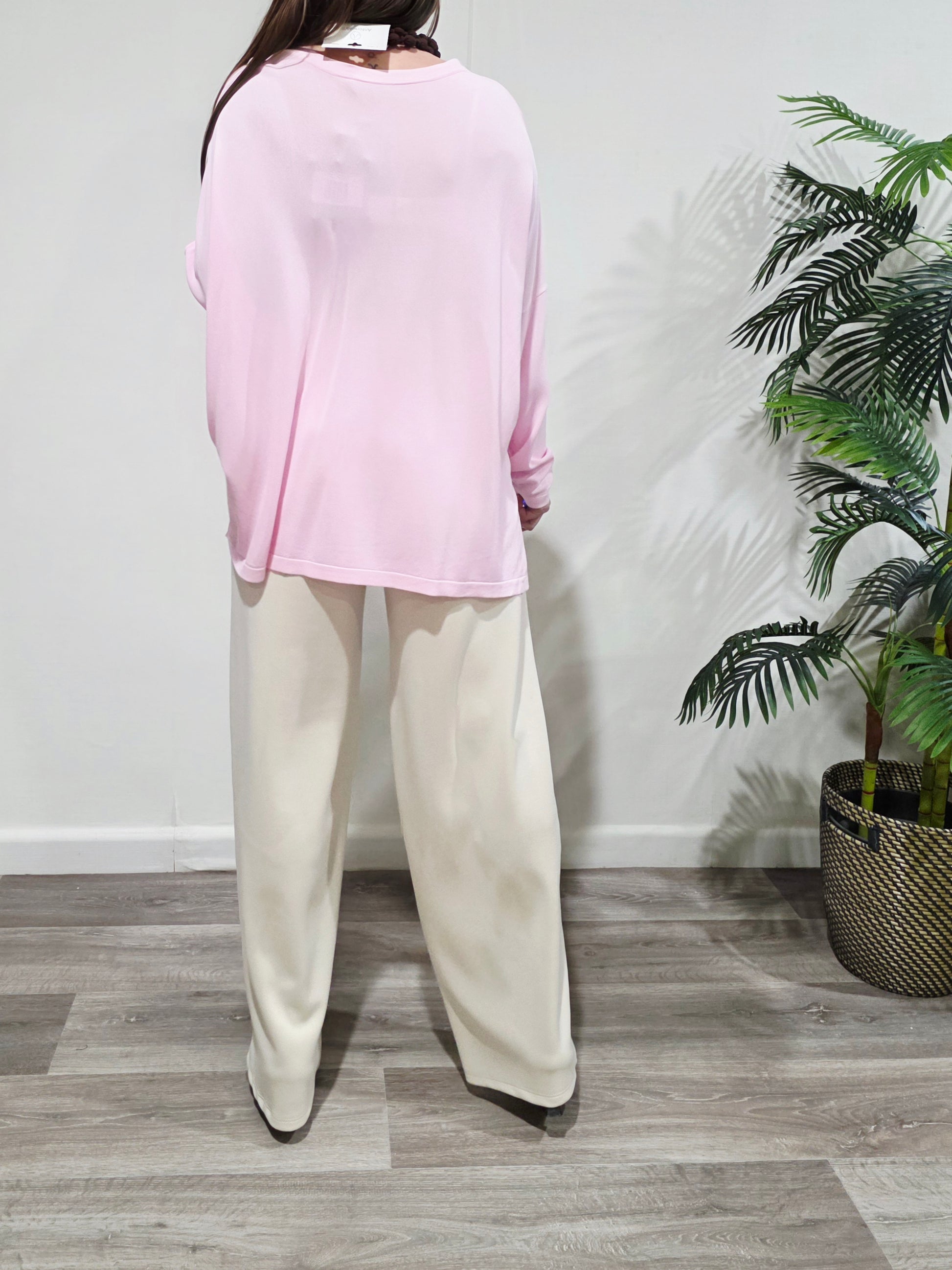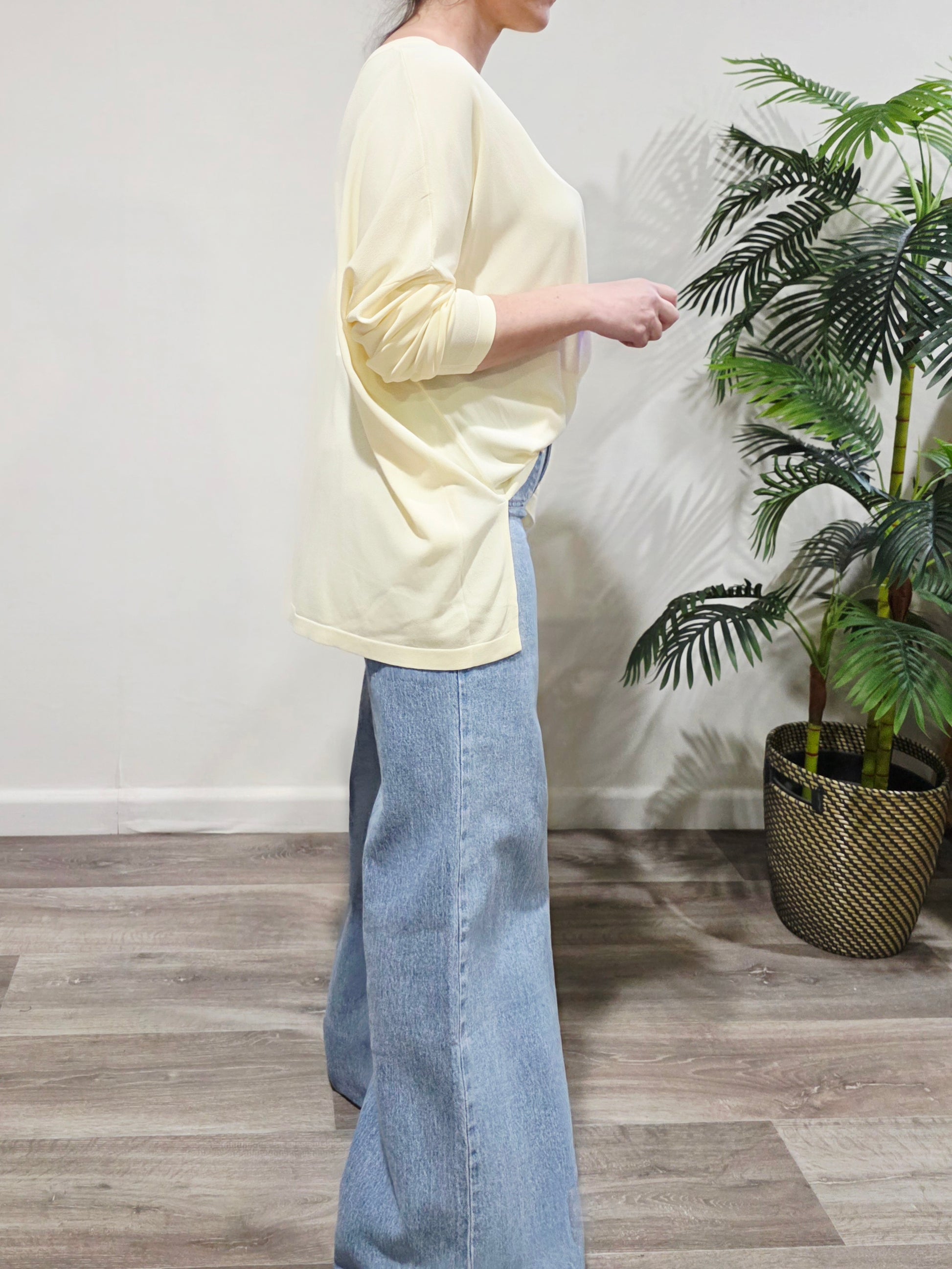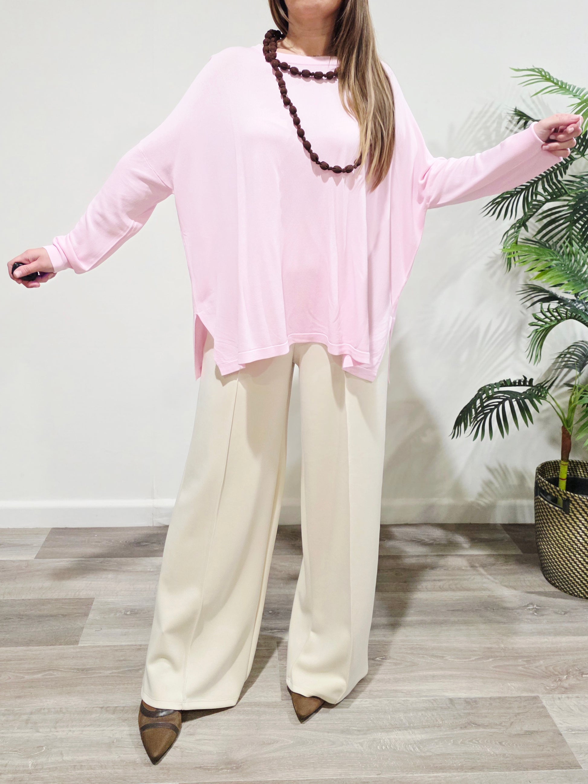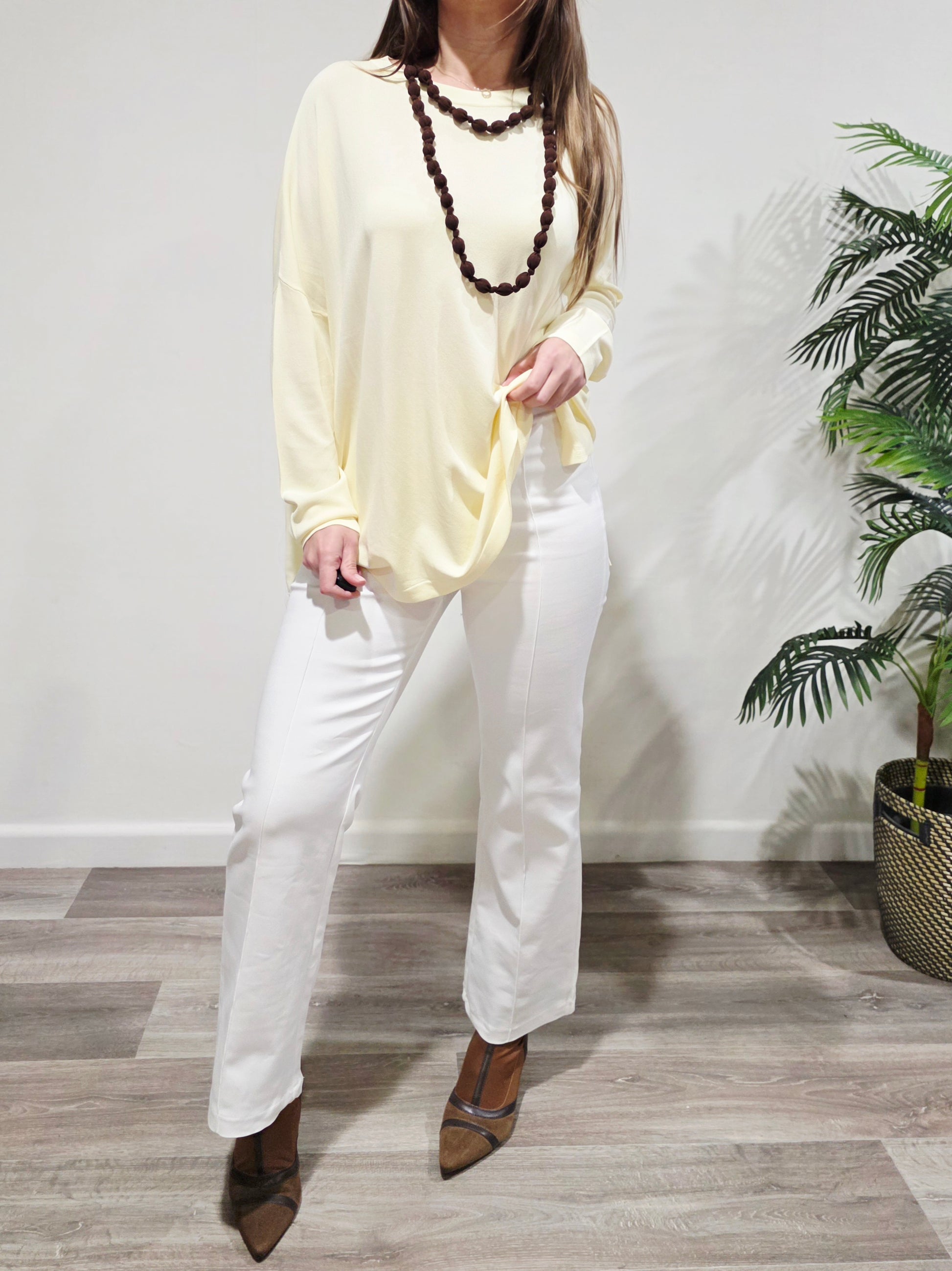 Jersey de punto fino y muy suave, con cuello redondo y corte recto que se adapta cómodamente a la silueta. Tejido ligero y fluido, ideal para entretiempo y perfecto para llevar solo o debajo de chaquetas y blazers.